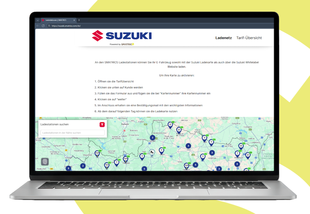 Mit dieser Kooperation unterstützt Smatrics Suzuki dabei, Elektromobilität für Kunden von Beginn an einfach und alltagstauglich gestalten. Speziell dafür steht unter suzuki.smatrics.com außerdem eine eigens entwickelte Website zur Verfügung. Dort kann schnell und einfach nachgesehen werden, wo man Elektrofahrzeuge von Suzuki mit dieser Ladekarte aufladen kann. Smatrics freut sich über diese großartige Zusammenarbeit und darüber, einen weiteren Schritt in Richtung nachhaltiger Mobilität zu setzen.